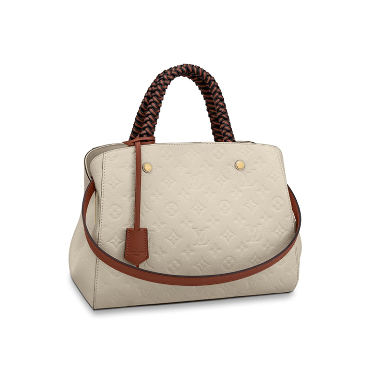 The Montaigne MM handbag is fashioned from embossed Monogram Empreinte leather in a Creme Beige and Caramel colorway for Fall 2019. Exquisite details like the braided top handles, caramel-colored keybell and leather shoulder strap complement the softness of the bag's creamy beige hue. Inside, the smart design is structured with ample room for everyday needs.