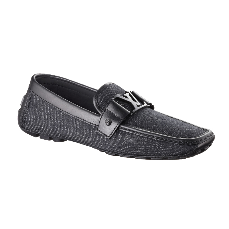 Louis Vuitton's iconic initials moccasin is given a trendy twist in denim. It features a hand-stitched upper and a supple padded rubber sole.