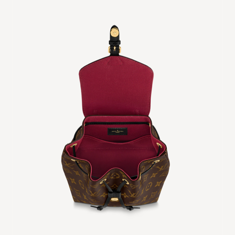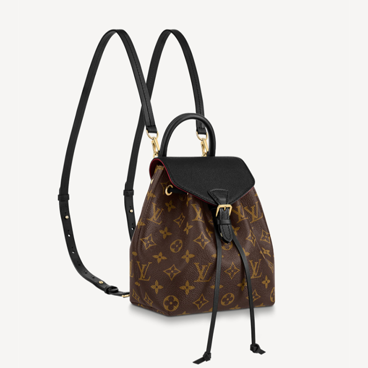 Louis Vuitton introduces the Montsouris BB Backpack in classic Monogram canvas and black cowhide leather for Winter 2020. This compact backpack is inspired by the original Montsouris from 1994, as can be seen in its gold-color buckle and leather drawstring, but its lines have been modernized. A top handle and removable adjustable leather straps allow multiple carry options.