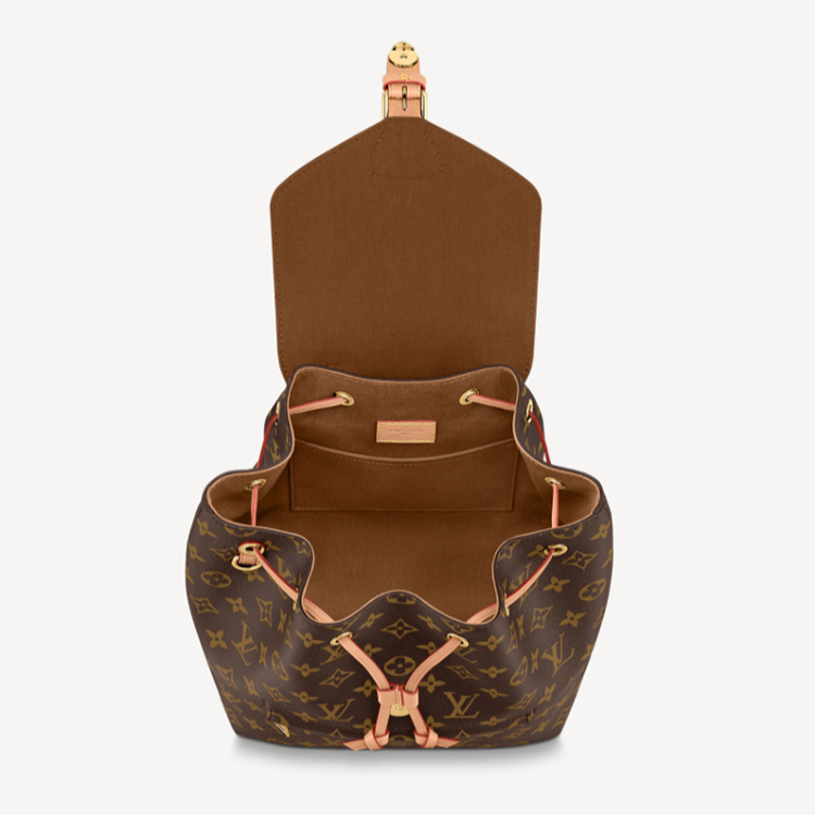 The Montsouris PM is an elegant new backpack made from Monogram canvas and cowhide leather, it closes with a archive Louis Vuitton buckle and leather drawstrings. Practical, with a roomy interior, it features an outside zipped pocket. The top handle and adjustable leather straps allow multiple carry options