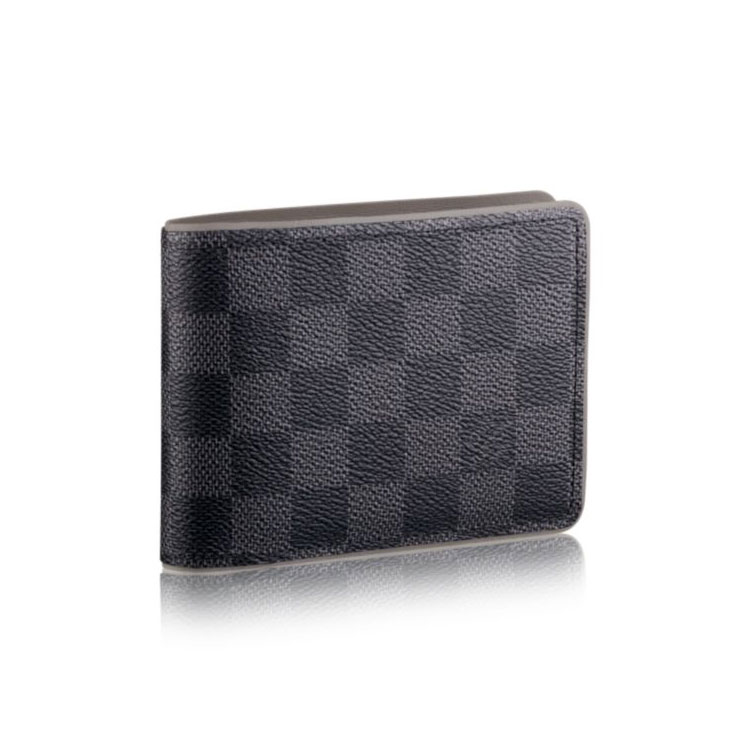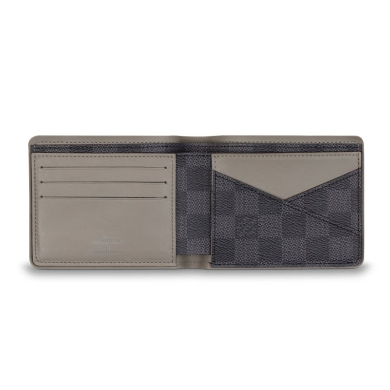 The Multiple Wallet is ideal to hold credit cards, bills and receipts in a very compact format. The smart mix between Damier Graphite canvas and colored leather lining adds an extra veneer of sophistication.