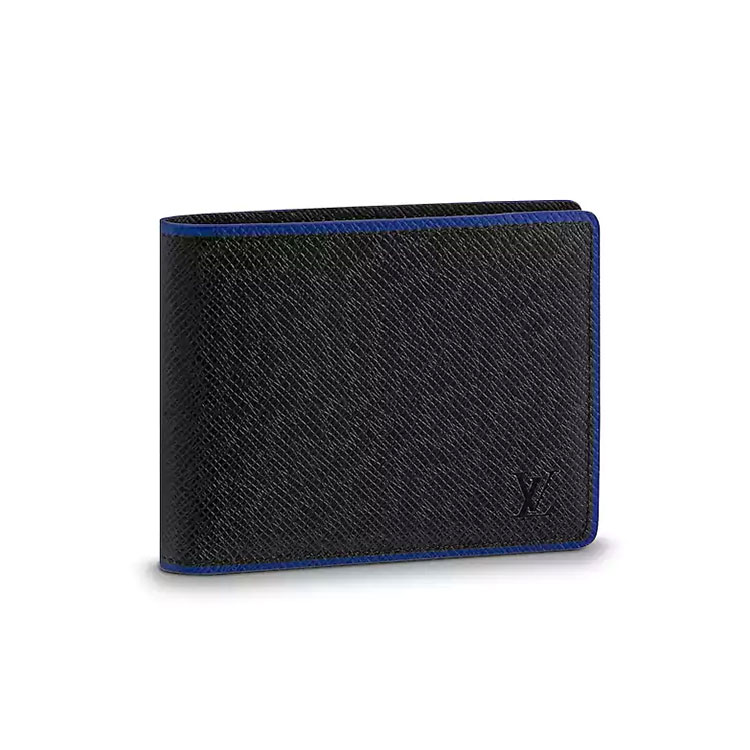 Louis Vuitton's Multiple wallet holds credit cards, bills and receipts in an extremely compact format. It looks modern and elegant in emblematic Taiga leather, energized with bold contrasting edges.