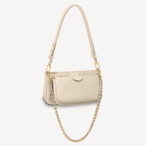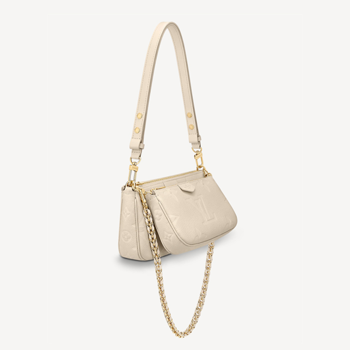 The Multi Pochette Accessoires cross-body bag in Monogram Empreinte leather allies form with function. Every part of this two-in-one bag is removable: the two pouches, the gold chain and the leather strap. The oversized Monogram embossed on the front contrasts perfectly with the classic Monogram pattern on the side gussets.