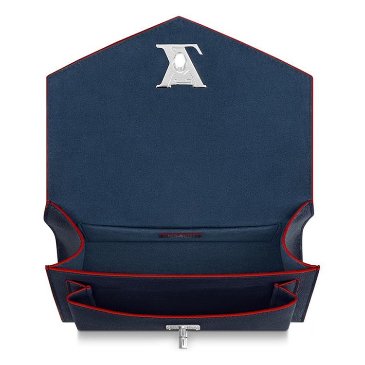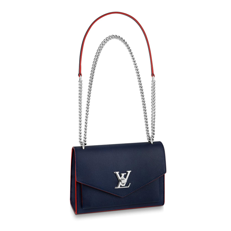 For Spring-Summer 2019, the Mylockme BB handbag is fashioned from navy blue calfskin with red calfskin trim. The signature silver-color LV turn lock and sophisticated chain-and-leather strap complete this adorable BB-size everyday bag. It鈥檚 perfect for shoulder carry or cross-body wear.