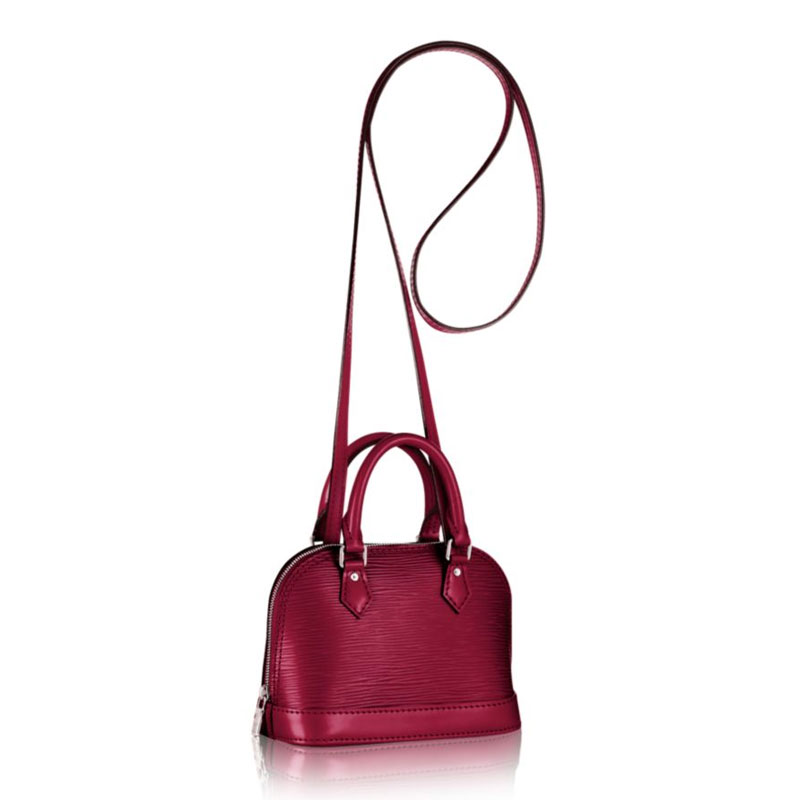 The ultra-feminine Nano Alma in sophisticated Epi leather is the ideal way to carry your daily essentials. This perfect miniature version of the original Alma bag, down to the stitching, is a very light bag that easily fits your smartphone, credit cards and keys.