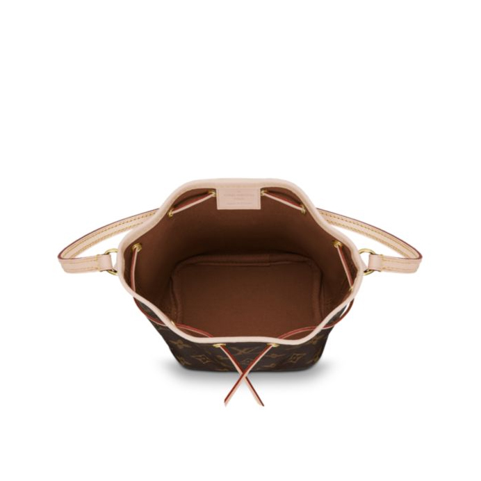 The ultra-feminine Nano Noe in iconic Monogram canvas is the ideal way to carry your daily essentials. This perfect miniature version of the original Noe bag, down to the stitching, is a very light bag that easily fits your smartphone, credit cards and keys.