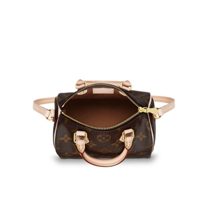 The ultra-feminine Nano Speedy in iconic Monogram canvas is the ideal way to carry your daily essentials. This perfect miniature version of the original Speedy bag, down to the stitching, is a very light bag that easily fits your smartphone, credit cards and keys.