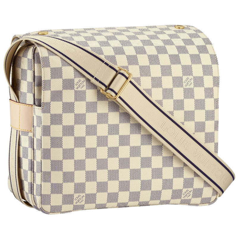 Perfect for casual use or during the summer, the Naviglio is the unisex model of the Damier Azur collection. Featuring the two emblematic colors of the canvas, its strap gives it a sporty look.