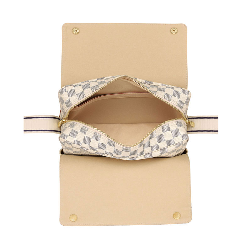 - Damier Azur canvas, lining and trimmings in natural cowhide