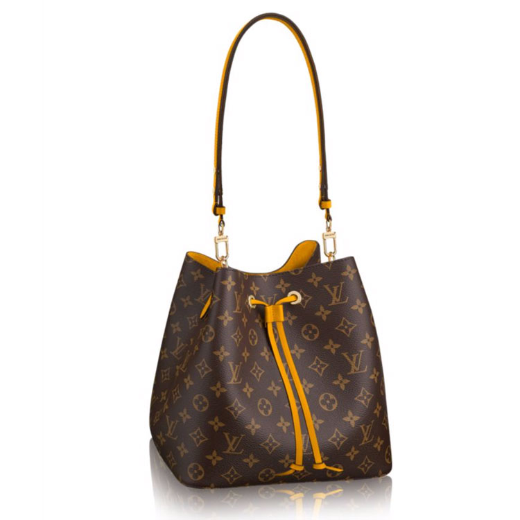 Designed in 1932 to transport bottles of Champagne, the No茅 returns for Spring 17 as the N茅ono茅, an on-trend bucket bag in supple Monogram canvas with colorful calf-leather accents and an adjustable strap that lengthens for a modern, cross-body carry.