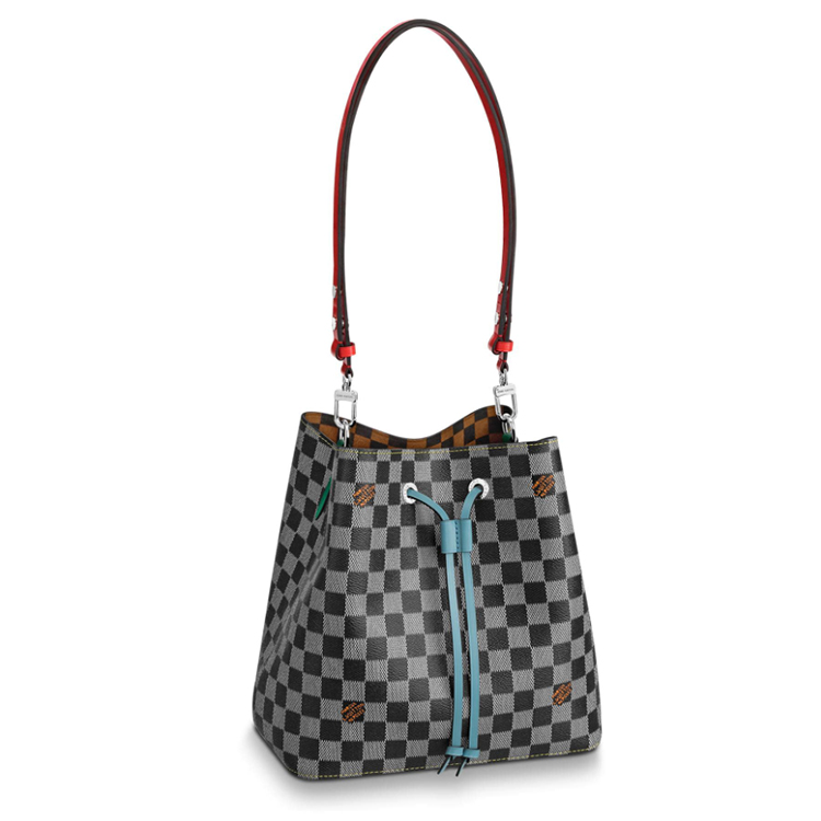 The NeoNoe handbag is made from Nicolas Ghesqui猫re鈥檚 new eye-catching black-and-white version of Damier canvas and features colorful details like the blue drawstring. Inspired by a bucket bag Louis Vuitton created in the 1930s to carry champagne bottles, it can be worn over the shoulder or cross-body thanks to its adjustable strap.