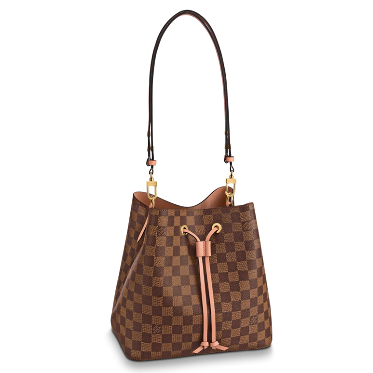 The NeoNoe bucket bag is fashioned from Damier Eb猫ne canvas, accented with colorful details such as its drawstring and matching bonded lining. This lightweight and body-friendly bag can be worn cross-body or over the shoulder with a long or short drop, thanks to its adjustable strap. The inside zipped pocket keeps valuables safe.
