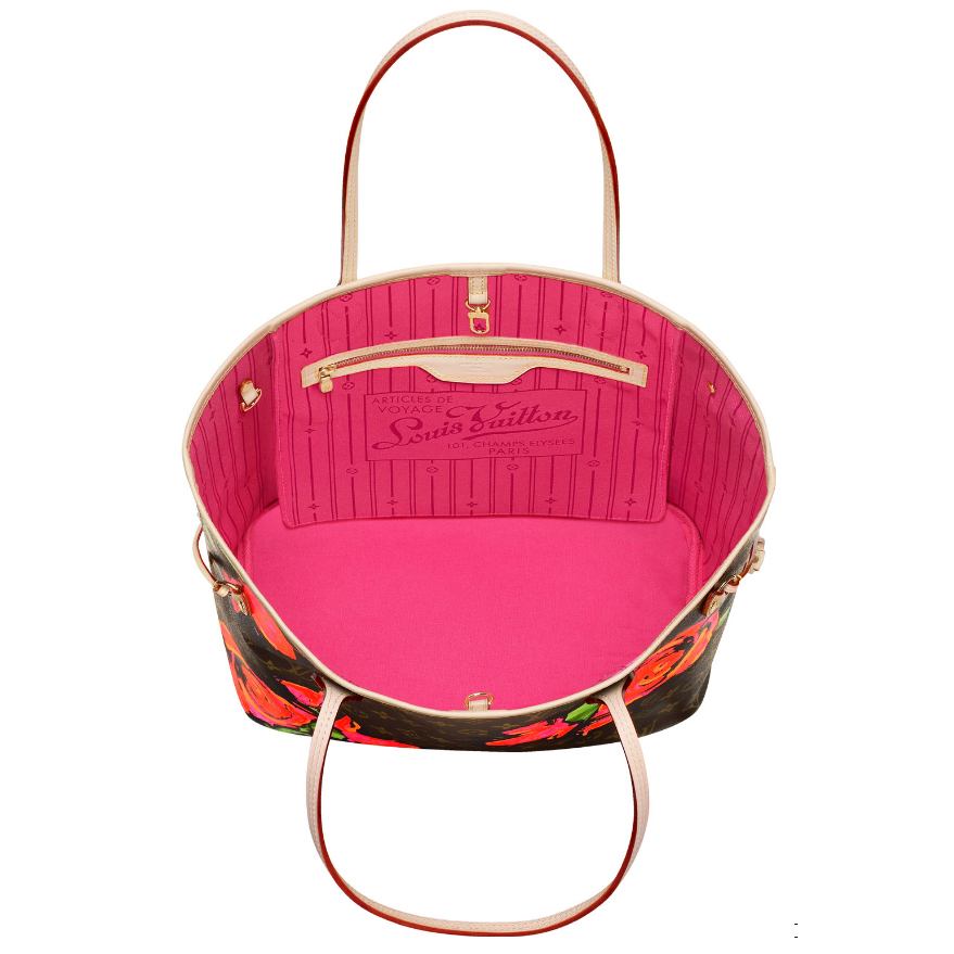 This feminine Neverfull in Monogram Roses canvas, inspired by late American artist Stephen Sprouse, is ideal for town and travel. Its large format can be adjusted, which makes it very practical.