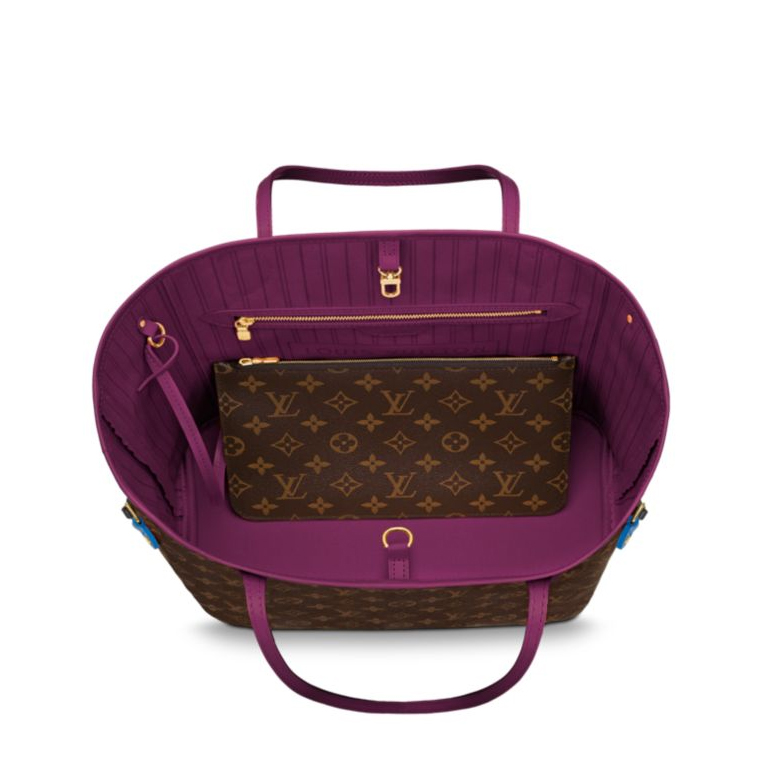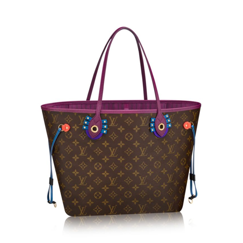 The Neverfull Monogram takes on an eye-popping allure, with intricate details in colorful Epi leather and engraved metal accents. In its latest incarnation, inspired by ethnic designs, this indispensable tote-about-town makes a fresh, fun fashion statement.
