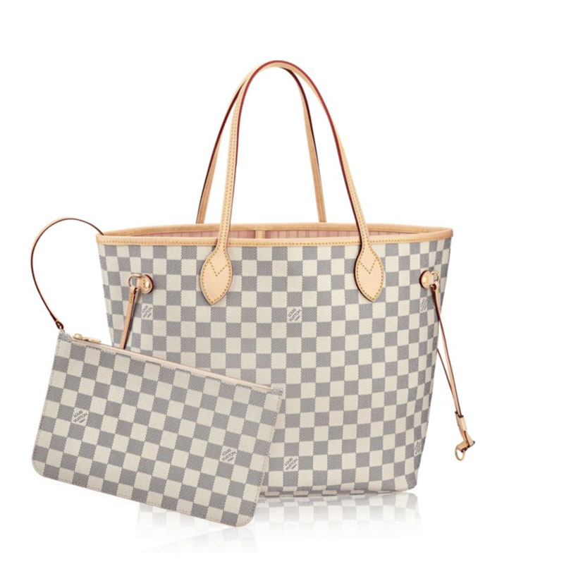 Legendary Neverfull: always exactly what you need it to be. Capacious but not bulky, structured yet supple, at home on the town or in the country. Cinch the side laces, and voil脿! it鈥檚 a sleek city bag. Loosen them and you have a chic, practical tote. The slim leather handles fit over the shoulder or on the arm. Shown here in Damier Azur canvas.
