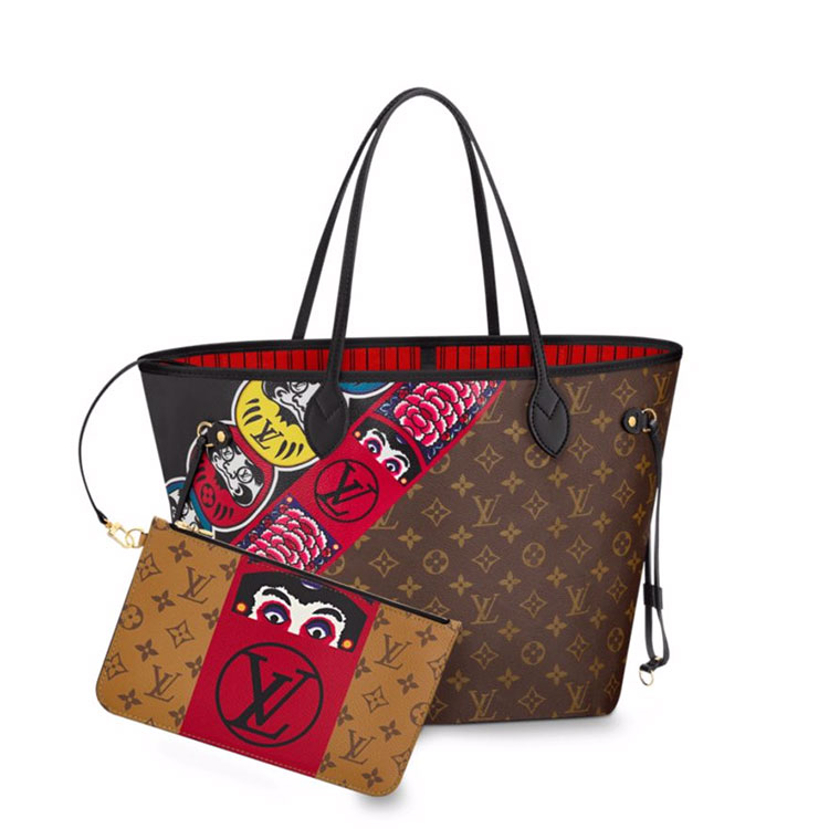 The Neverfull gets a high-fashion update from big, bold Kabuki stickers designed by Nicolas Ghesquiere for Cruise 18. The Japanese-inspired motifs are artfully printed on Monogram canvas for a covetable, collectible edition of the indispensable tote.