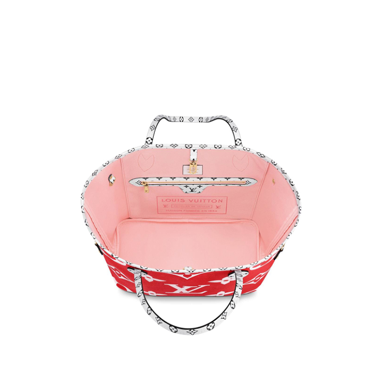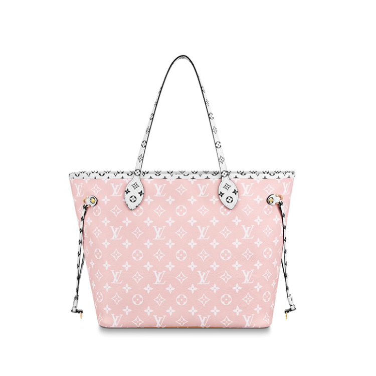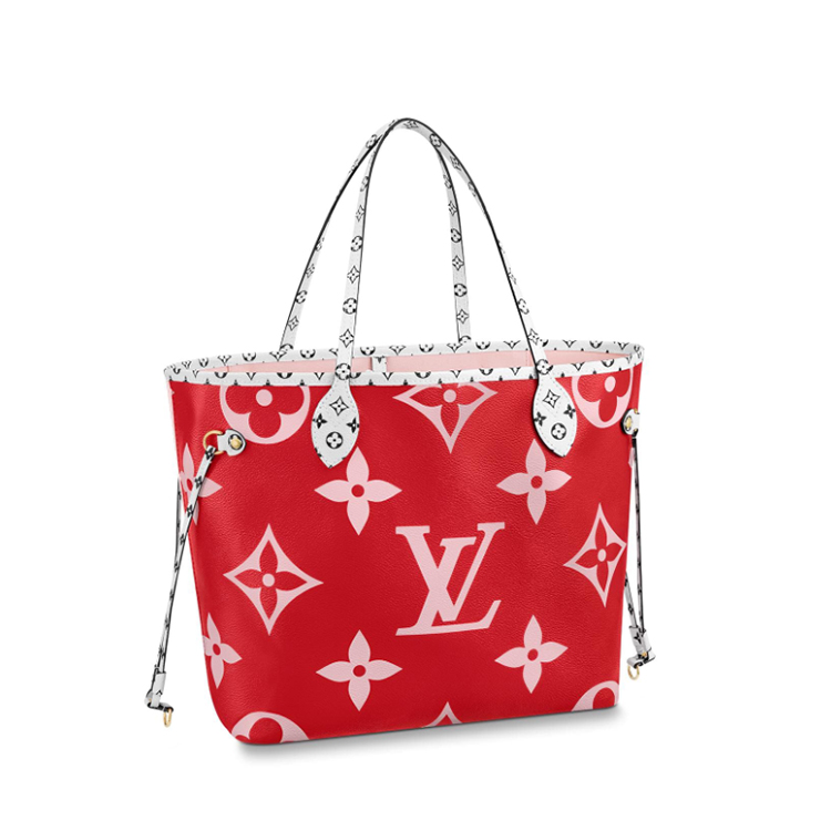 Playful, colorful, Neverfull: this season the iconic carryall wears a bold new spin on Monogram canvas. Oversized and Mini versions of the signature motif combine in sunny color palettes for a fun, summery look. Worn over the shoulder or carried on the arm, this MM model pairs perfectly with both beach and city looks.