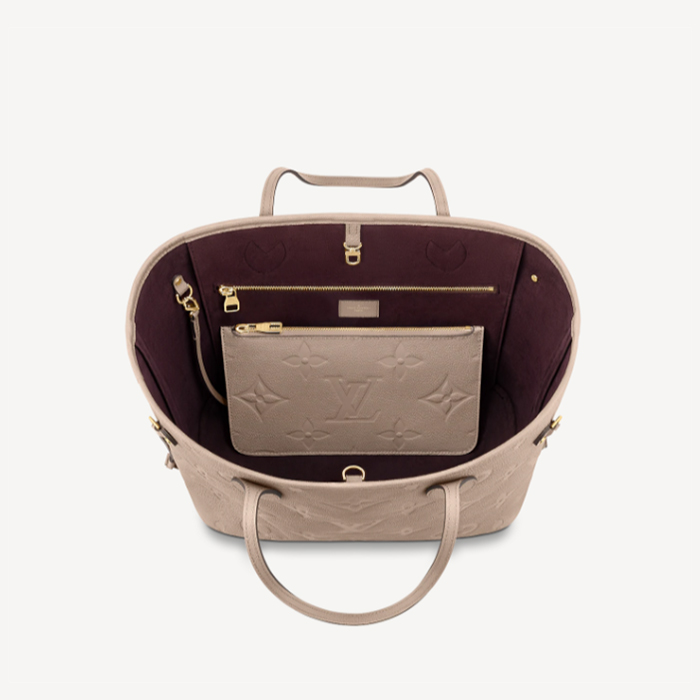 The essential Neverfull MM tote now comes in embossed Monogram Empreinte leather. Its generous dimensions make this bag ideal for everyday use while the long shoulder handles and supple leather mean it鈥檚 comfortable to carry. With the side laces cinched, this roomy carryall becomes a stylish city bag. It can be worn over the shoulder or on the elbow.