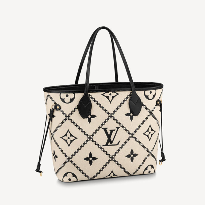 For Spring 2022 the House introduces a refined edition of the Neverfull tote in Monogram Empreinte leather. This statement piece is embellished with contrast stitching that recalls the heritage Malletage pattern, used on the linings of original Louis Vuitton trunks. The motif is printed, embossed, then impeccably embroidered on the leather, creating an on-trend, crafted effect.