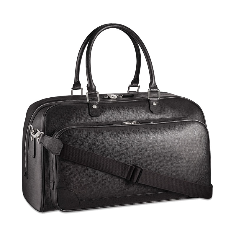- Taiga leather discretely bearing the LV initials, grained leather trimmings and textile lining