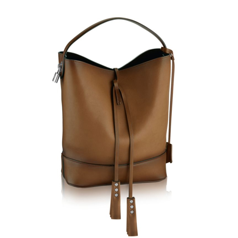 The signature bag of Louis Vuitton's Spring/Summer 2014 women's fashion show, the NN 14 was inspired by the iconic Noe. The distinctive features of its elegant, pared-down design are hand-pleated leather tassels and the emblematic LV padlock and key bell. Inside the bag, a removable pouch is perfect for stowing valuables. In supple Cuir Nuance calfskin with a vintage-style patina and subtly gradated shades (except Noir), the NN 14 will become ever more beautiful the longer it is used.