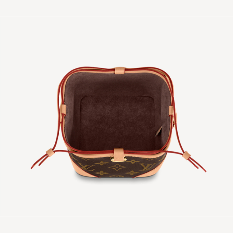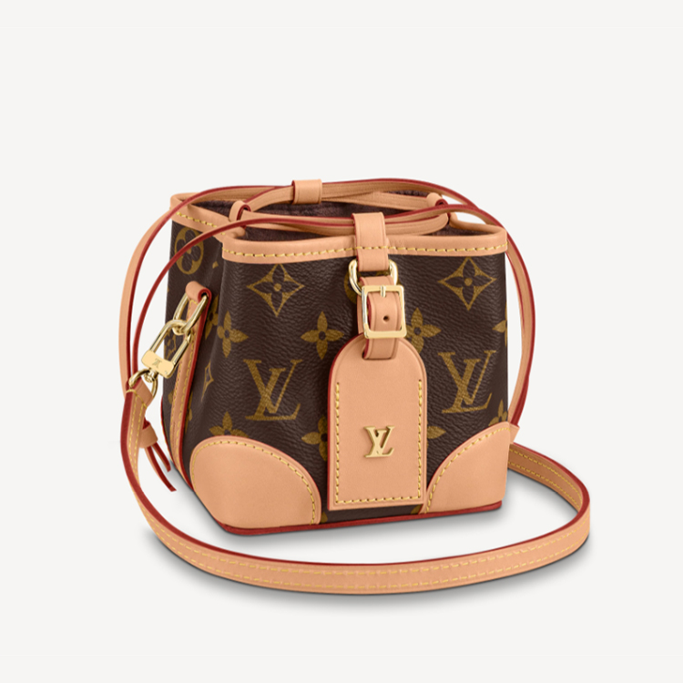 A miniature interpretation of the iconic No茅 bag, the No茅 purse appeared on the runway at Louis Vuitton's Fall-Winter 2020 fashion show. This version is crafted from Monogram canvas with natural leather details, including a luggage tag and a removable strap.