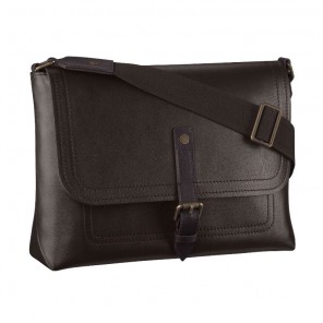 Utah leather and polished vintage brass give this bag a distinctive masculine look. Carried on the shoulder, it reveals several compartments and a zipper pocket beneath the flap.