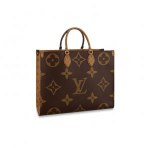 Fashioned from Monogram Giant canvas, the Onthego tote bag is as striking as it is practical. A Monogram Reverse pattern on the sides and handles creates a stylish contrast in color and scale. With its generous capacity, shoulder straps and iconic Toron top handles, this versatile GM model is an ideal bag for everyday wear.