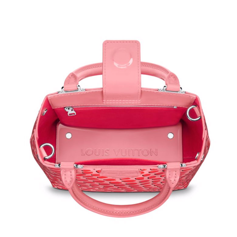 With its modern shape and soft curves, the Open Tote in embossed Monogram patent calf leather with a Jungle Dots print is the synthesis of functionality and style. The unexpected pattern brings a joyous on-trend twist while its capacity makes it effortlessly practical.