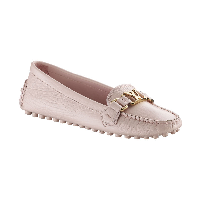 These elegant, feminine loafers in soft grained calf leather are discreetly signed with an LV initials accessory and sport an extremely supple rubber nub sole.