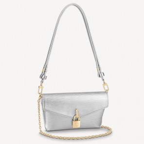 The Padlock On Strap bag is crafted from Louis Vuitton's emblematic Epi leather, recognizable for its distinctive grain. Ideal for essentials, this contemporary design offers multiple carry options thanks to its removable chain, removable, adjustable strap, and belt loop at the back. It closes securely with a magnetic clasp accessorized with an LV-engraved padlock.