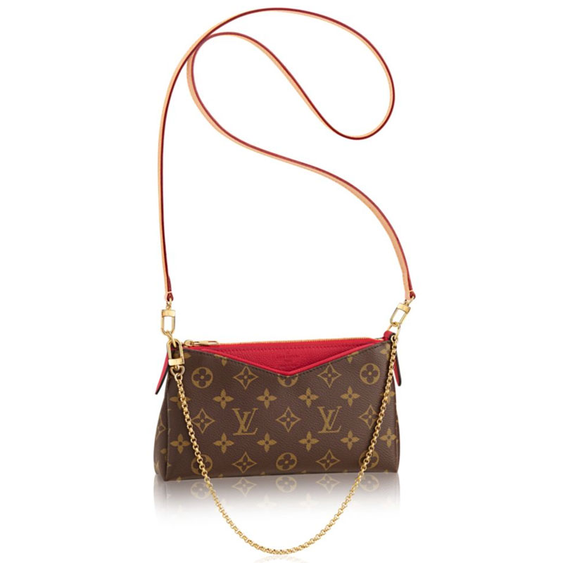 The unique design of Monogram canvas matched with supple grained leather makes this a versatile day-to-night bag with style. It boasts a golden chain for short-shoulder, long-shoulder and cross-body carry!