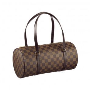 Modern in Damier canvas, the most spacious Papillon bag comes with a removable round pouch.