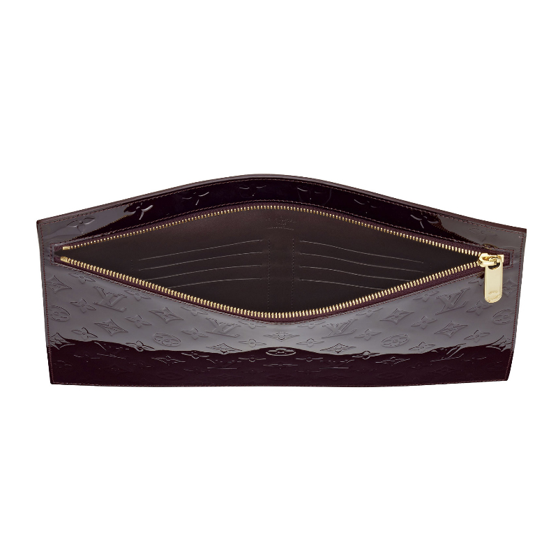 As a bold evening clutch or a glamorous addition to any bag, the Pershing GM is an elegant and feminine way to carry the essentials. Glossy Monogram Vernis leather completes this versatile accessory.