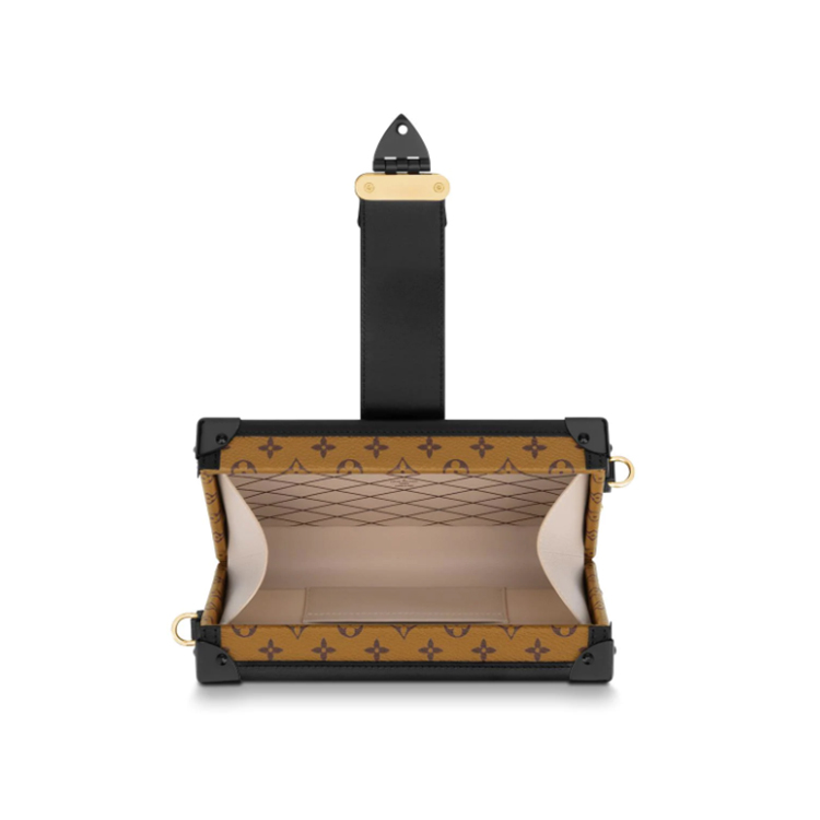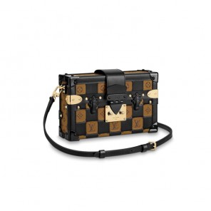 The Damier Tressage Petite Malle handbag is an elaborately crafted design paying tribute to Louis Vuitton's heritage. Monogram or Monogram Reverse on black version canvas and supple calf leather are interwoven to create a graphic check pattern evoking Damier canvas. This miniature interpretation of one of the House's historic trunks is secured by an iconic S-lock clasp.