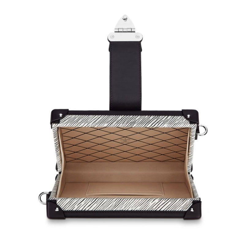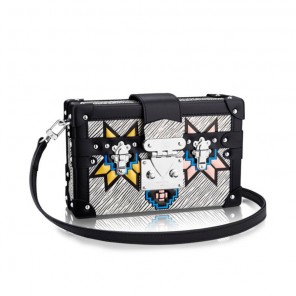 Tiny trunks were a big story on the F/W 15 runway. This luxe edition of the Petite Malle in Epi Azteque leather features a stone-washed blue or white denim finish embellished with ethnic-inspired pattern. Viewed up close, the ethnic motifs reveal a "family resemblance" to Monogram flowers: with this design, Nicolas Ghesquiere pays tribute to House heritage, to the Vuitton spirit of travel and to the tradition of impeccable workmanship. A precious, statement piece for day-to-evening wear.
