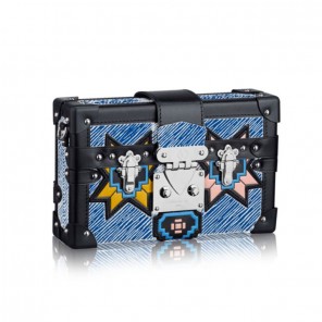 Tiny trunks were a big story on the F/W 15 runway. This luxe edition of the Petite Malle in Epi Azteque leather features a stone-washed blue or white denim finish embellished with ethnic-inspired pattern. Viewed up close, the ethnic motifs reveal a "family resemblance" to Monogram flowers: with this design, Nicolas Ghesquiere pays tribute to House heritage, to the Vuitton spirit of travel and to the tradition of impeccable workmanship. A precious, statement piece for day-to-evening wear.