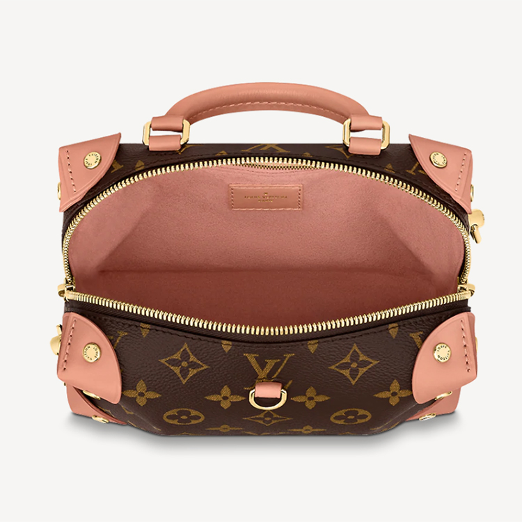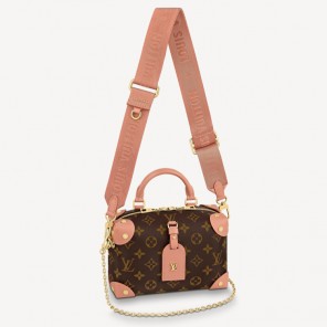 The distinctive Petite Malle Souple is a soft handbag steeped in the House history. The Monogram canvas, riveted leather corners, and leather name tag all evoke Louis Vuitton鈥檚 legacy as a trunk maker. A gold-color nautical chain and wide removable strap, with Louis Vuitton Malletier embroidered on it, bring up-to-the-minute style.