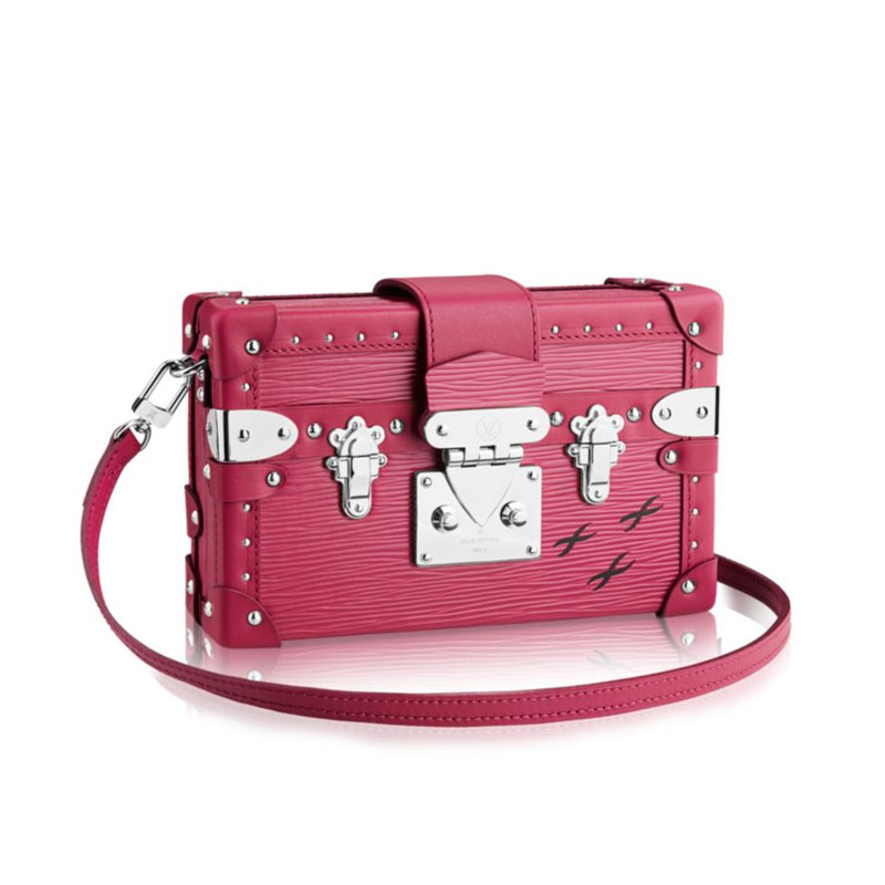 The Petite Malle beautifully mixes Louis Vuitton craftsmanship with a bold, stylish statement. Reflecting the Maison鈥檚 heritage in trunkmaking, it is adorned with the crosses signature of world traveler Albert Kahn. Ageless and perfect for day to night chic. The Epi leather, historical heritage of the House, is reinterpreted in a modern and fashionable fuchsia color with studded epi leather trimming for the F/W 15 show.