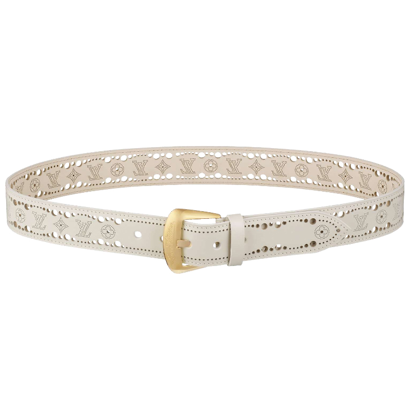 With intricate pinpoint perforations forming Louis Vuitton's iconic Monogram pattern, this mid-waist jeans belt is a sophisticated and feminine reinterpretation of the Western spirit.