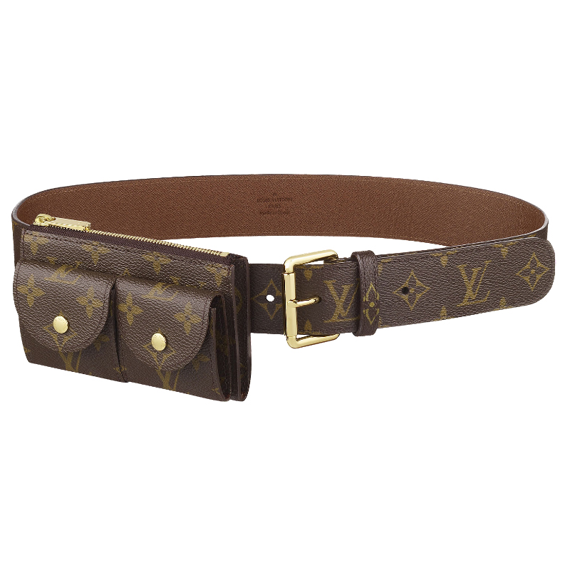 This stylish, body-friendly belt in Louis Vuitton's iconic Monogram canvas comes ,no with the small bag. .