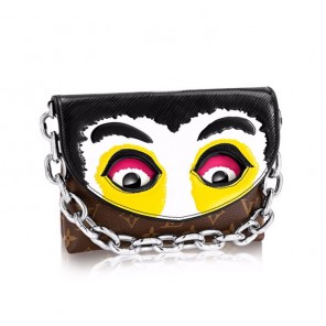 Spotted several times at the Cruise 18 show, the Kabuki Masks Pochette is richly crafted of colorful Epi leather paired with Monogram Reverse canvas. It is fitted with a heavy chain handle and adjustable strap, for a host of fashionable carry options.