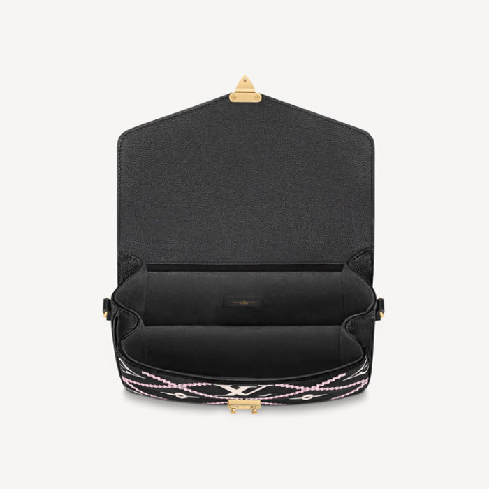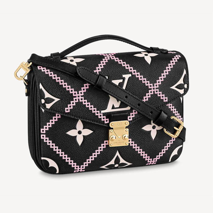 For Spring 2022 the Pochette Metis handbag in Monogram Empreinte leather is embellished with embroidery inspired by the quilted linings of original Louis Vuitton trunks. House craftsmanship shines in the colors and textures of the stitching against a background of embossed leather. This versatile statement piece features a convenient top handle and a removable cross-body strap.