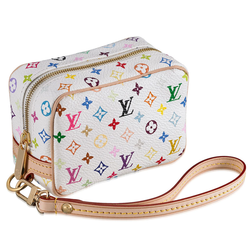 This clutch is crafted in Monogram Multicolore canvas created by Takashi Murakami. It can be carried on the wrist thanks to a golden metal chain.