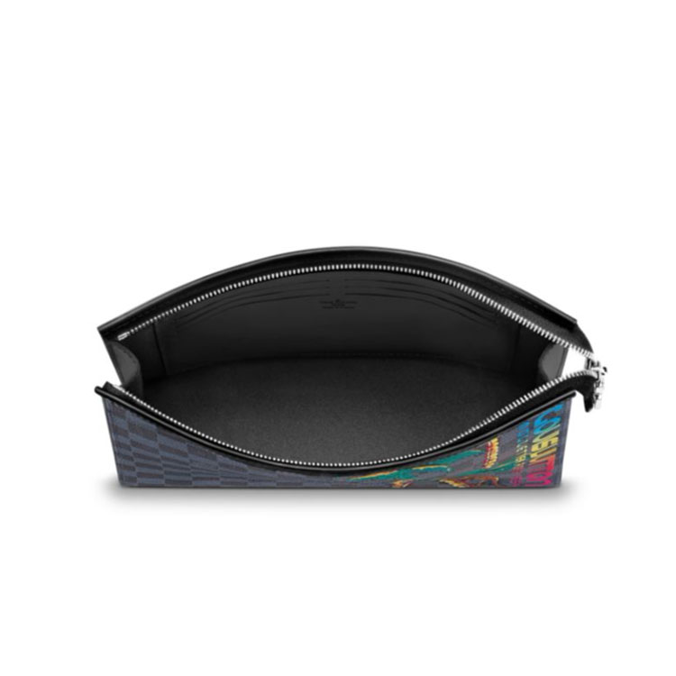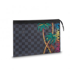 Inspired by the Spring/Summer 2018 men's fashion show, the Jungle theme features a playful palm tree print and surfboard-style rainbow Louis Vuitton signature on Damier Cobalt canvas. Compact and versatile, with plenty of space for essentials, the Pochette Voyage can be slipped into a bag as a travel pouch or hand-carried for a trendier look.