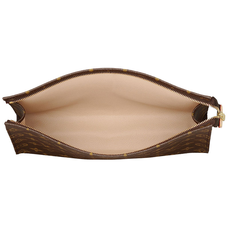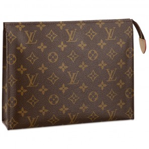 The largest of the toiletry pouch in Monogram canvas boasts a spacious interior with gusset sides for easy storage. It slips easily into a handbag.