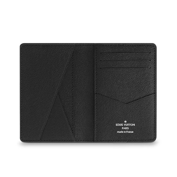 Louis Vuitton's compact Pocket Organizer is the perfect all-in-one wallet, holding credit cards, bills and papers. It looks modern and elegant in emblematic Taiga leather, energized with bold contrasting edges.