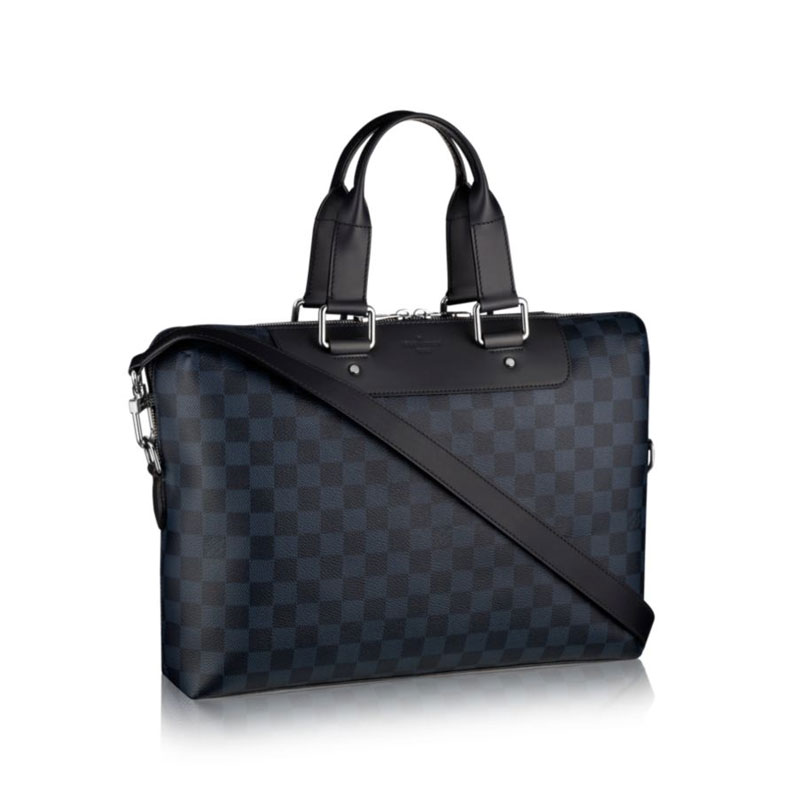 The Porte-Documents Jour in arresting Damier Cobalt canvas is a more compact and casual version of the Porte-Documents Voyage. Yet it easily carries a 15” laptop in fine style.