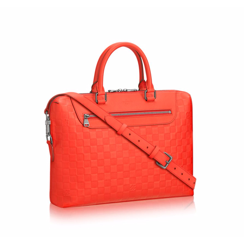 Richly embossed Damier Infini leather adorns the Porte-Documents Jour. For the city-dwelling man, this is a highly practical bag, with its multiple carry options, its very practical zippered pocket in the front and enough room to easily carry a 15" laptop.