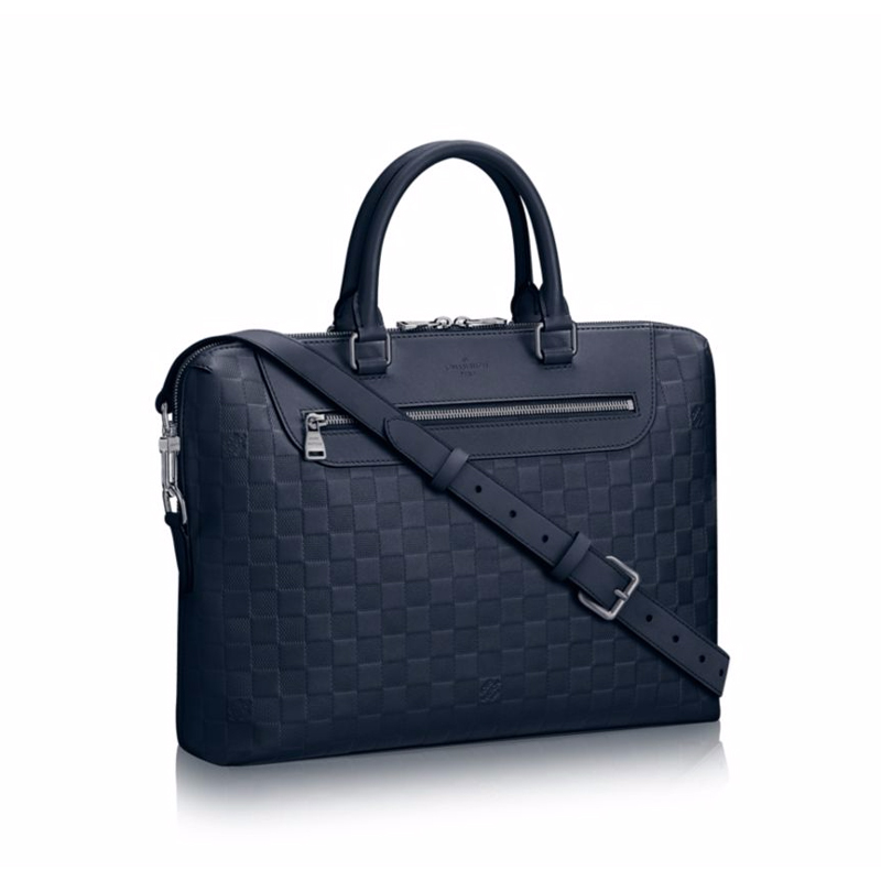 Richly embossed Damier Infini leather adorns the Porte-Documents Jour. For the city-dwelling man, this is a highly practical bag, with its multiple carry options, its very practical zippered pocket in the front and enough room to easily carry a 15" laptop.